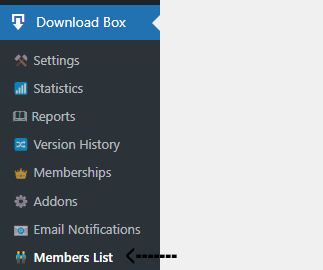 In WordPress admin, go to Download Box Pro β Members List