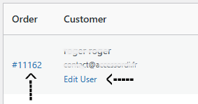 Click "Edit User" link under any customer's name to access their WordPress user profile.
